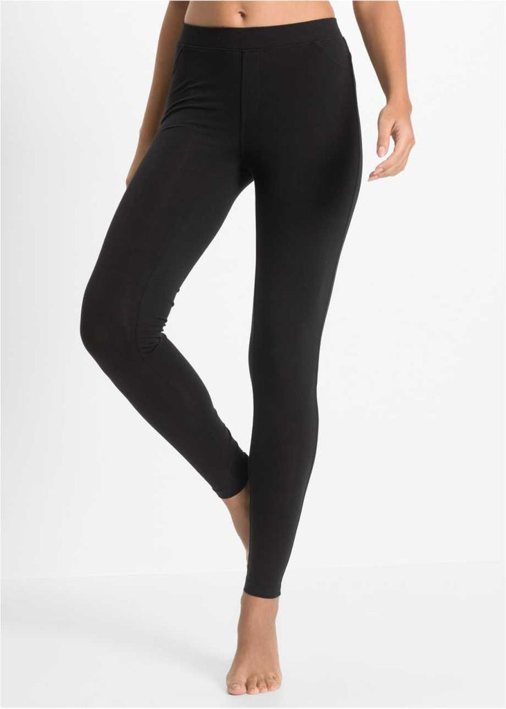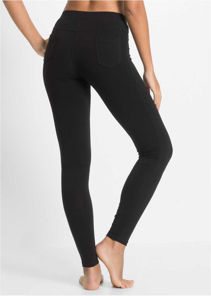 Front fake pockets, real patch pockets on the back, an implied closure and decorative seams give these leggings a great trouser look. The model with an elastic waistband fits perfectly thanks to the stretchy material and sets the scene for the figure.