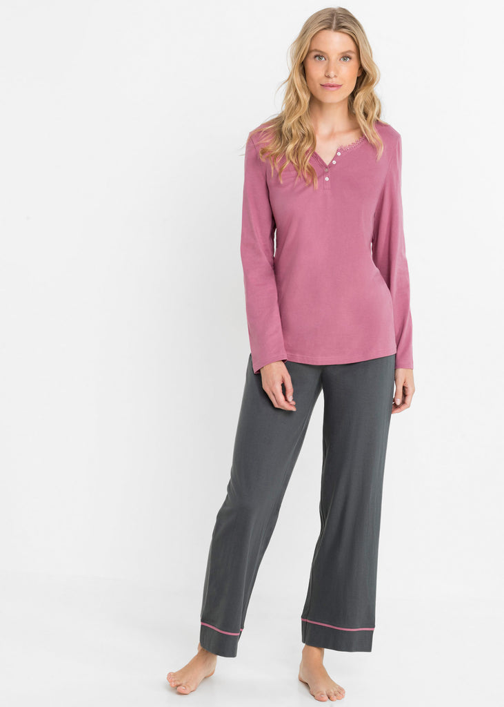 Feminine pajama suit with subtle lace