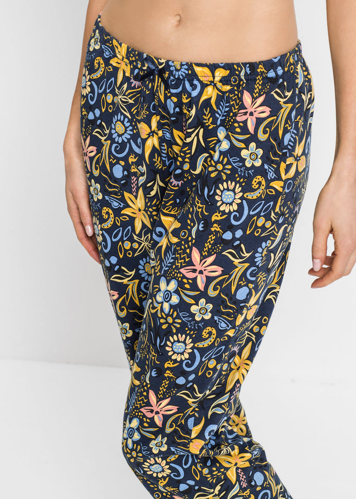 Slip on, feel good and relax - this Capri pajama scores with skin-friendly products. The pajamas consist of a short-sleeved shirt with a rounded V-neck and matching 3/4 length sleeping trousers. The trousers have an elastic waistband for comfort.