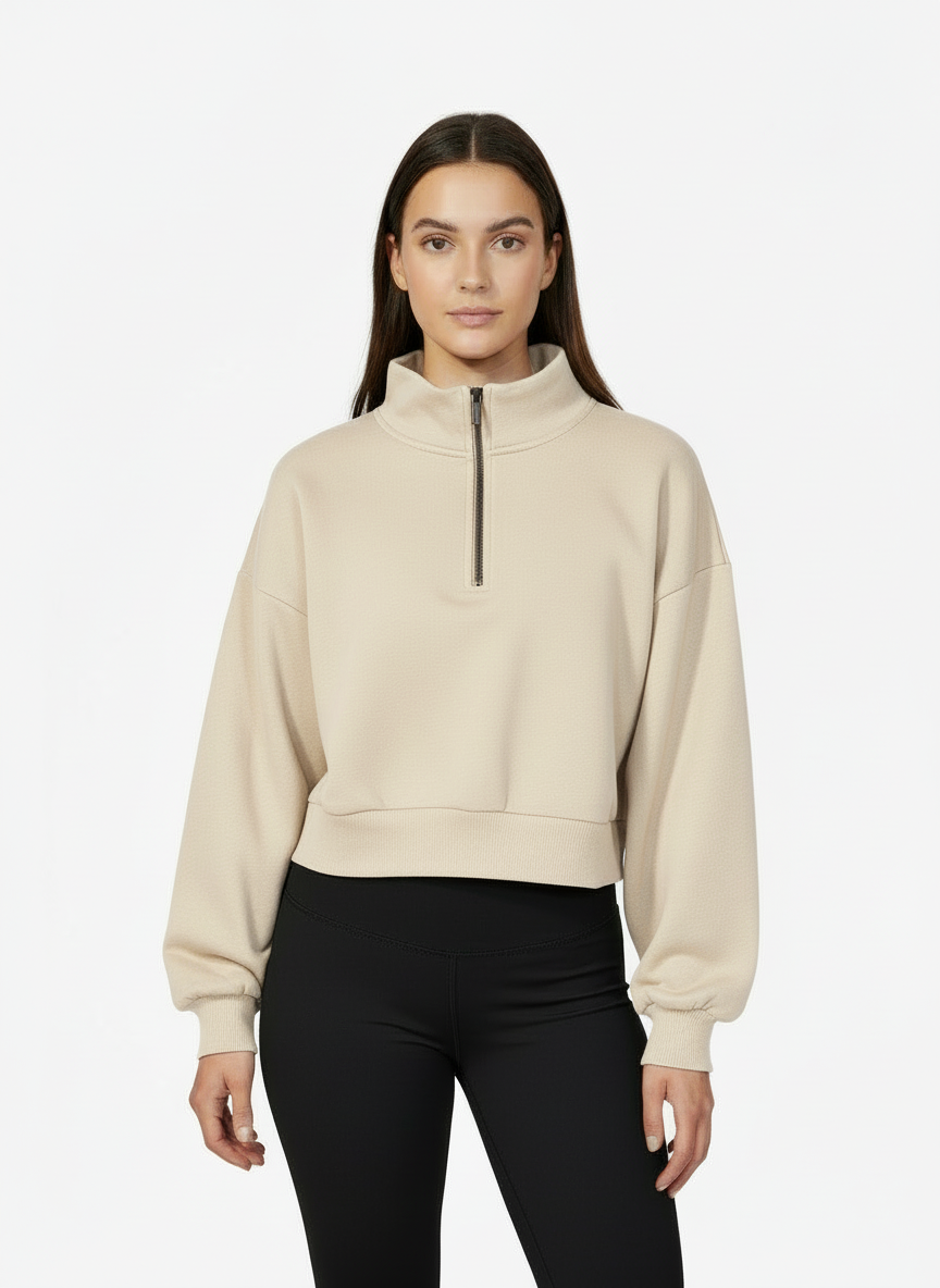 Women Quarter Zipped Sweatshirt (Beige)